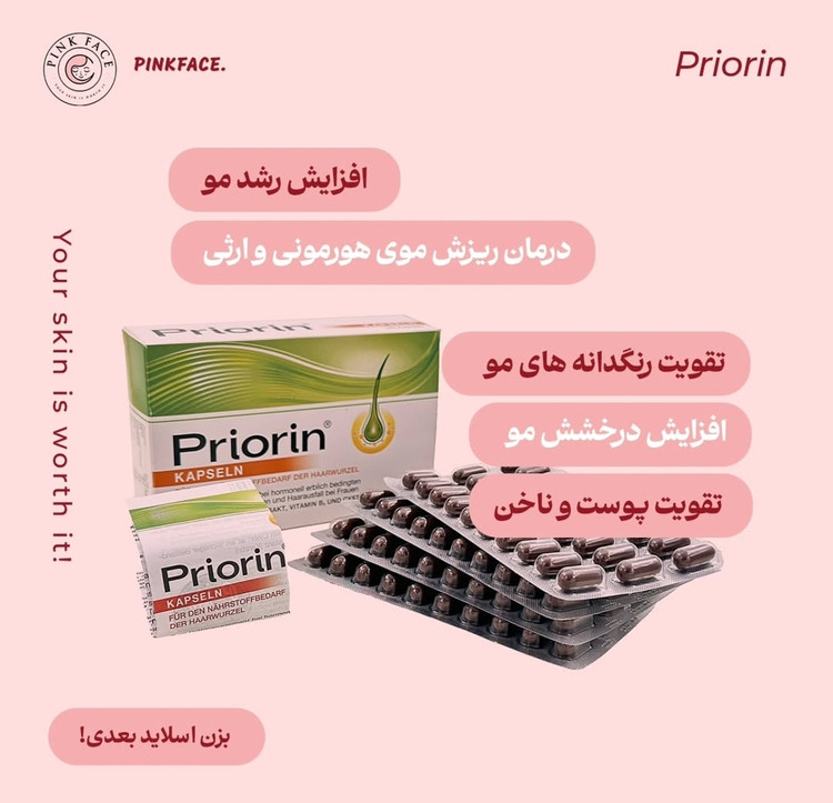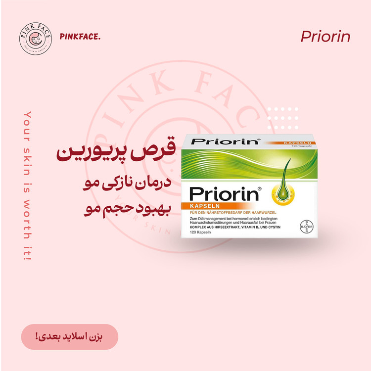 کپسول پریورین یا قرص Priorin یک مکمل برای جلوگیری از ریزش موی ارثی و هورمونی و ریزش مو در زنان(آلوپسی آندروژنتیک) است. قرص پریورین محصول شرکت بایر آلمان بوده و حاوی مهمترین مواد مغذی مو از جمله عصاره ارزن، ویتامین B5 و سیستین است. قرص پریورین برای مردان نیز قابل استفاده است و موها را از درون تغذیه کرده و باعث افزایش رشد مو و جلوگیری از ریزش مو میشود. نحوه مصرف پریورین روزانه 3 عدد(2 عدد صبح و 1 عدد عصر) به مدت 12 هفته یا 3 ماه میباشد.