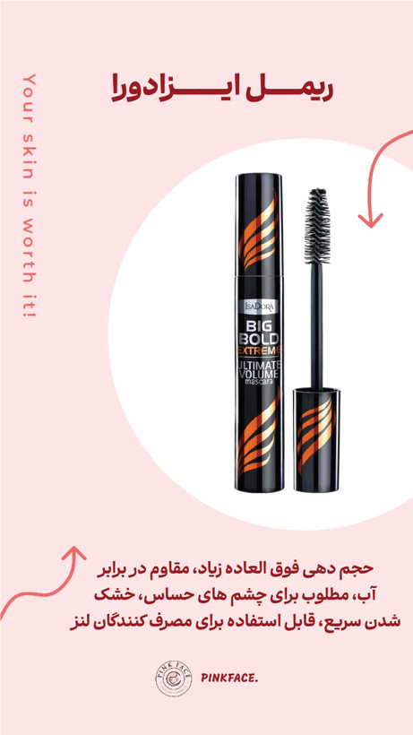 ریمل حجمدهنده ایزادورا مدل Big Bold Extreme محصولی با رنگدانههای غنی و رنگ مشکی است که به حجمدهی مژههای شما کمک میکند. این ریمل دارای برس فیبری و انعطافپذیر است که همین مسئله باعث میشود تا با استفاده از آن مژهها به بهترین شکل حجم و حالت بگیرند.: نارنجی_بنفش_آبی