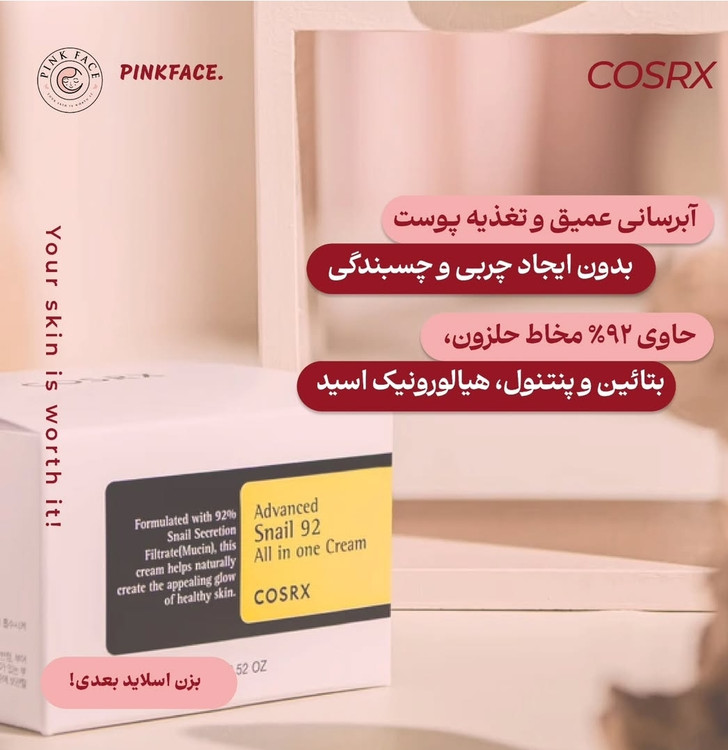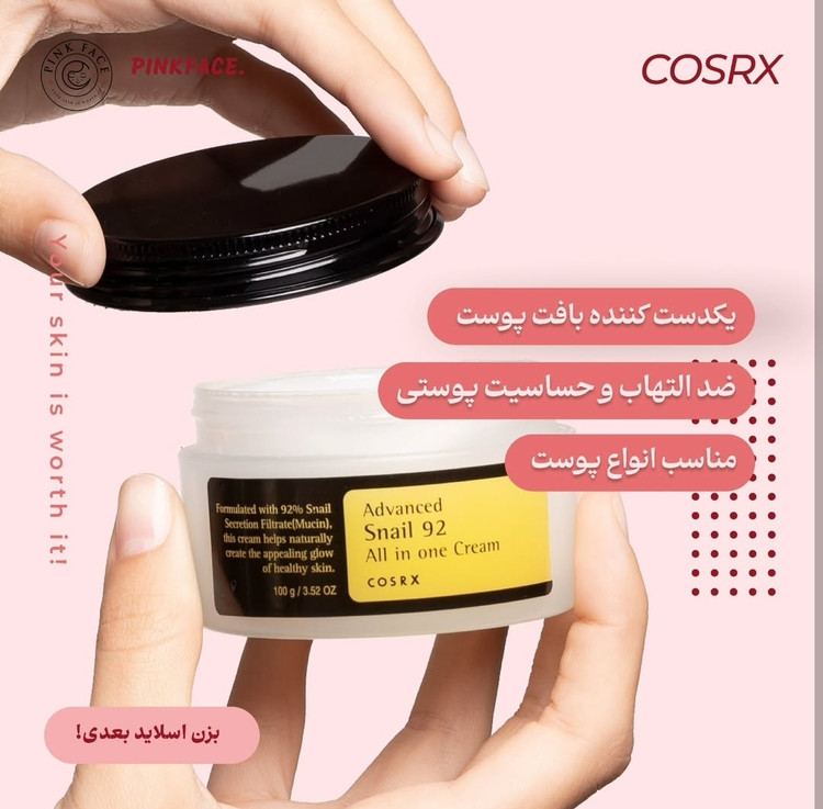 🧫حاوی ۹۲٪ مخاط حلزون، بتائین و پنتنول، هیالورونیک اسیده